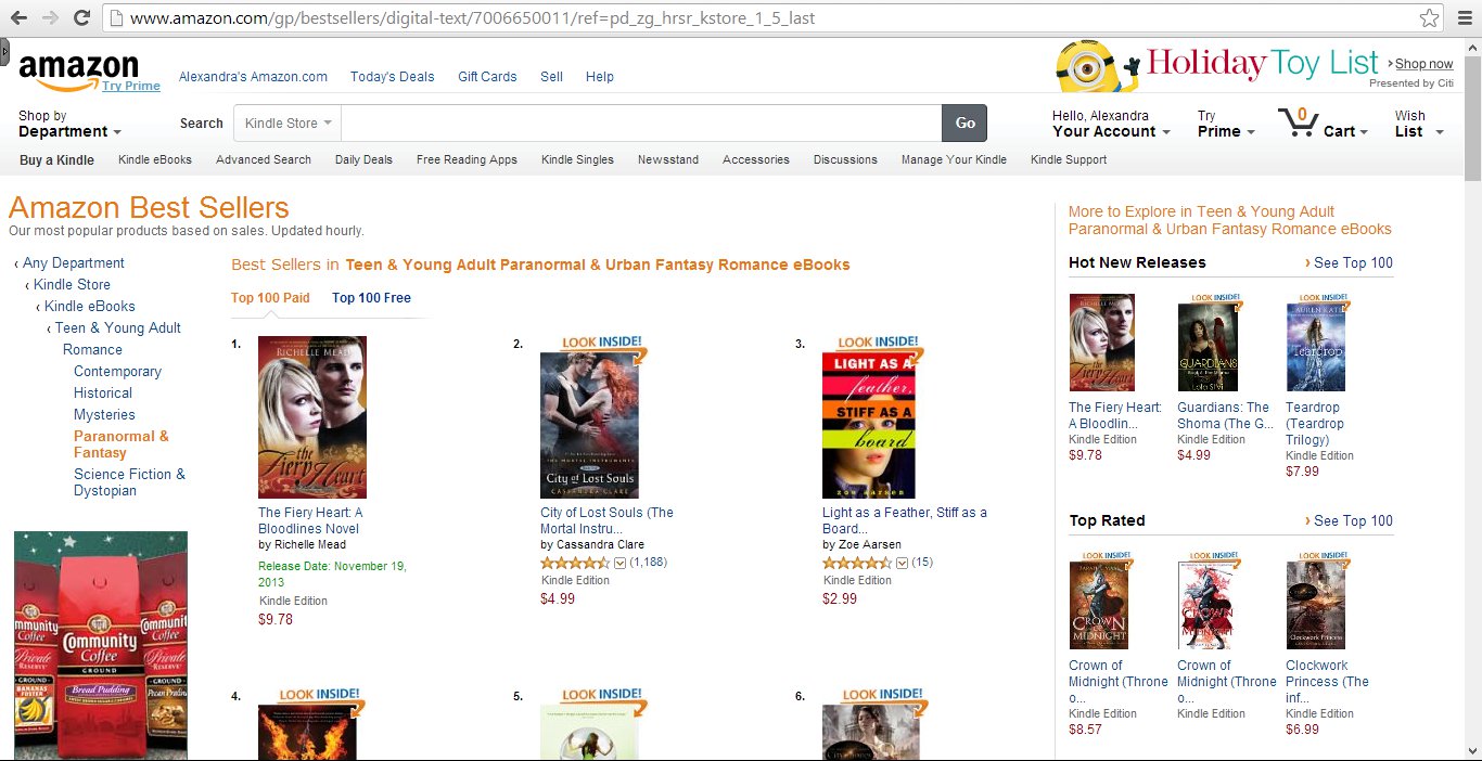 But seeing that people are interested in my book is pretty exciting, I’ve got to admit. And surpassing Twilight Book 1 in the paranormal teen romance list was very gratifying, even if it only lasted a few hours!
