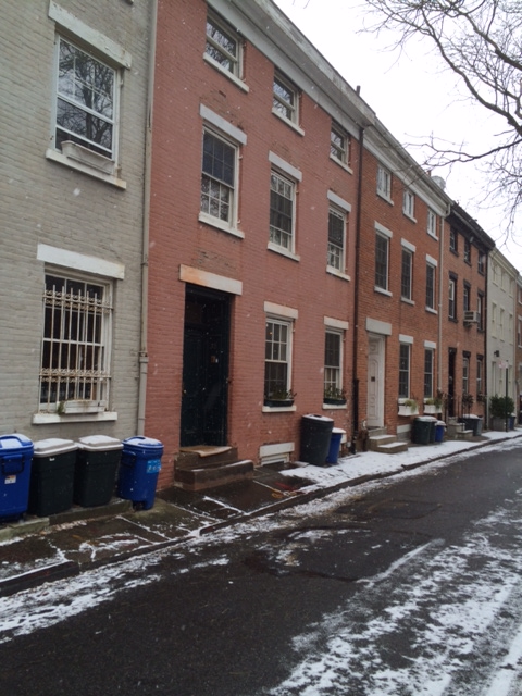 2) I’m rockin’ my gnome socks, a snow day tradition (also see below w/cameo by Silvio the cat).Xmas tree farm gnome socks Verandah Pl.If this street looks a little familiar, it’s because it’s the street where the scene from Season 1 of Damages was shot where the crazy cop-turned-bad chases David’s sister, Katie, intending to kill her to keep her silent about what she saw in Miami, but then she turns around and confronts him and he chickens out.